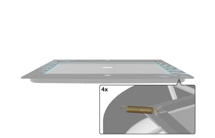 Vier veren om de Beschermrand Band te bevestigen aan het Frame van uw BERG Trampoline.