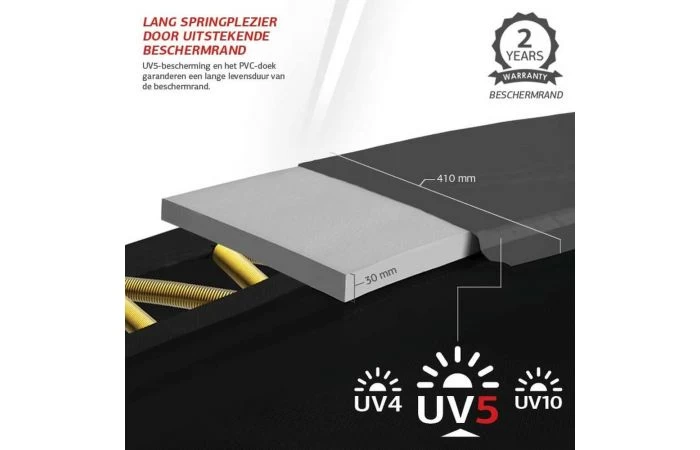 - Extra lange levensduur van de beschermrand door een onder en bovenlaag van wel 0,55 mm dik PVC!