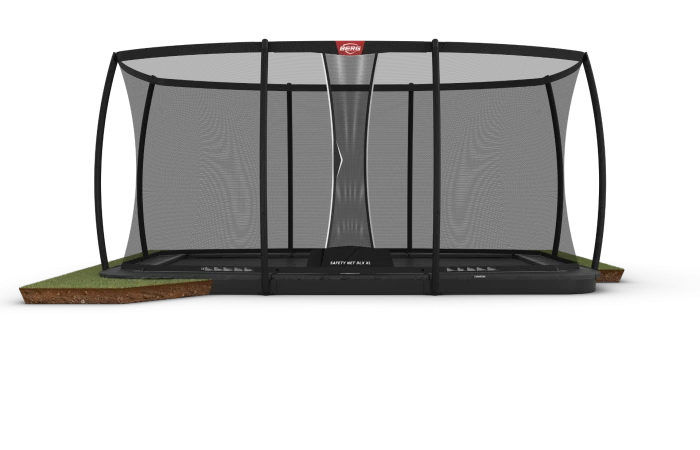 Een FlatGround trampoline is naadloos geïntegreerd in je tuin. De beschermrand van de trampoline ligt namelijk op gelijke hoogte met de tuin zelf. Dit zorgt voor een lage opstap, waardoor de trampoline makkelijk en veilig te betreden is.