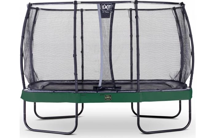 De EXIT Elegant Premium trampoline met Deluxe veiligheidsnet is een rechthoekige trampoline van zeer goede kwaliteit met een grijze beschermrand en een groene rok. Het ijzersterke frame van deze trampoline-serie is eenvoudig op te bouwen. De trampoline is veilig, mooi en ook heel gebruiksvriendelijk. De EXIT Elegant Premium trampoline met het Deluxe veiligheidsnet is een trampoline van absolute topklasse en het paradepaardje binnen de Elegant serie. Maar wat maakt deze trampoline nou zo uniek?