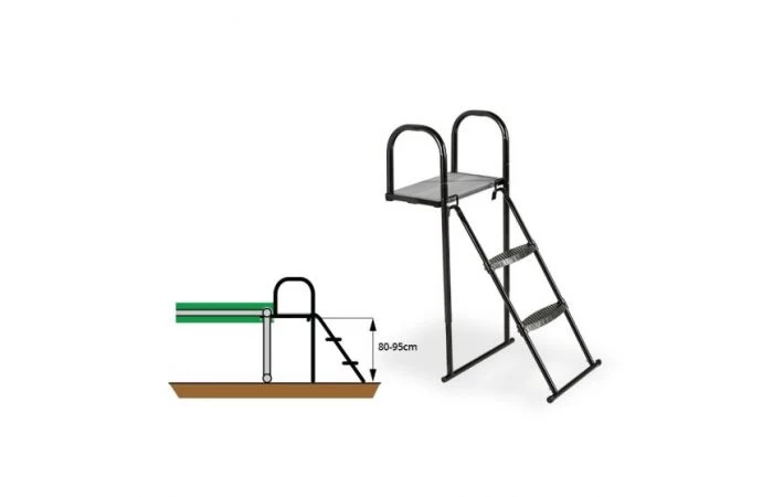 Het EXIT trampoline platform met een trampoline ladder voor framehoogtes tussen de 80 en 95 centimeter is een uitstekend hulpmiddel om op veilige wijze op een trampoline op poten te klimmen. Het platform wordt aan de trampoline bevestigd en de ladder hang je aan het platform, waardoor een prettige opstap naar de trampoline ontstaat.