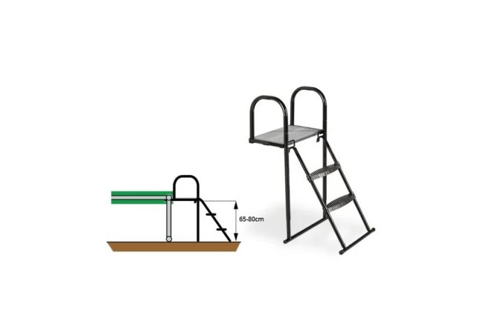 Het EXIT trampoline platform met een trampoline ladder voor framehoogtes tussen de 65 en 80 centimeter is een uitstekend hulpmiddel om op veilige wijze op een trampoline op poten te klimmen. Het platform wordt aan de trampoline bevestigd en de ladder hang je aan het platform, waardoor een prettige opstap naar de trampoline ontstaat.