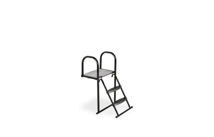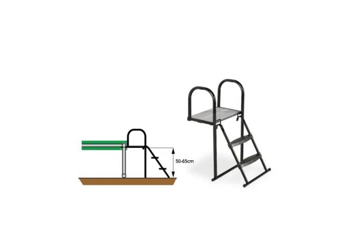 Het EXIT trampoline platform met een trampoline ladder voor framehoogtes tussen de 50 en 65 centimeter is een uitstekend hulpmiddel om op veilige wijze op een trampoline op poten te klimmen. Het platform wordt aan de trampoline bevestigd en de ladder hang je aan het platform, waardoor een prettige opstap naar de trampoline ontstaat.