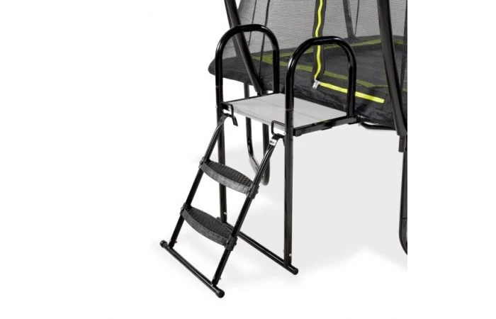 Het platform en de ladder hebben brede treden met anti-slip structuur, waar kinderen goed op kunnen staan voor ze door het veiligheidsnet klimmen. Voor extra veiligheid en houvast is het platform aan de zijkanten voorzien van beugels. Deze combinatie van platform ladder is geschikt voor EXIT trampolines met een diameter van 183 en 244 centimeter.