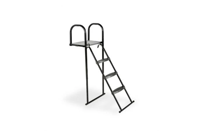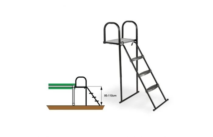 Het EXIT trampoline platform met een trampoline ladder voor framehoogtes tussen de 95 en 110 centimeter is een uitstekend hulpmiddel om op veilige wijze op een trampoline op poten te klimmen. Het platform wordt aan de trampoline bevestigd en de ladder hang je aan het platform, waardoor een prettige opstap naar de trampoline ontstaat.
