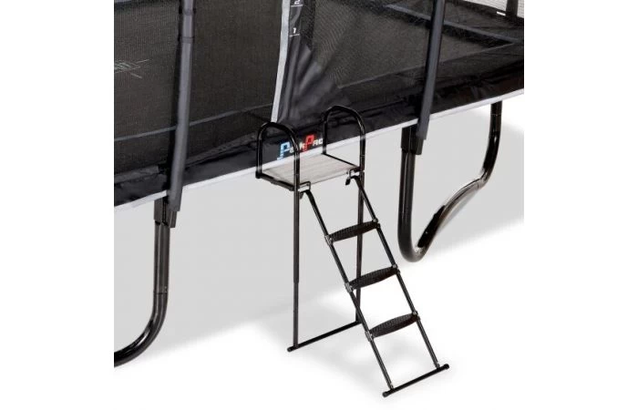 Het platform en de ladder hebben brede treden met anti-slip structuur, waar kinderen goed op kunnen staan voor ze door het veiligheidsnet klimmen. Voor extra veiligheid en houvast is het platform aan de zijkanten voorzien van beugels. Deze combinatie van platform ladder is geschikt voor EXIT trampolines met een afmeting van 305 x 519 centimeter en groter.