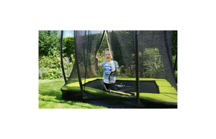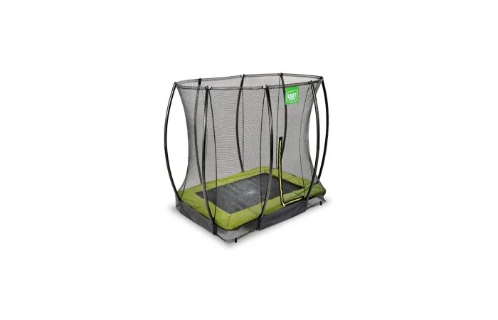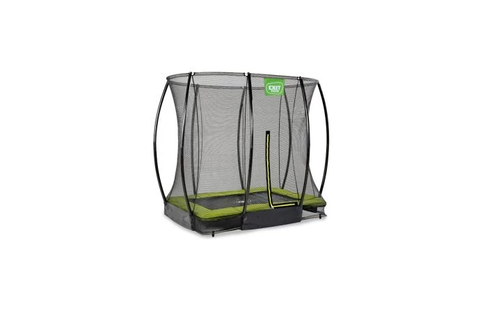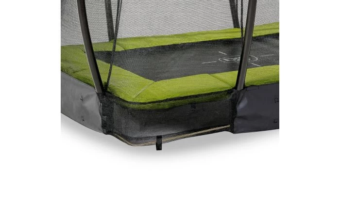 De EXIT Silhouette inground trampoline is een compacte rechthoekige trampoline met een limoengroene beschermrand. In een handomdraai graaf je een kuil in de grond waar de trampoline in wordt gezet voor een mooi en veilig resultaat. Zo hoef je je als ouders geen zorgen te maken dat de kinderen bij een missprong van een hoge trampoline af kunnen vallen.