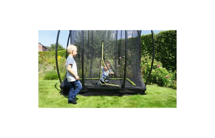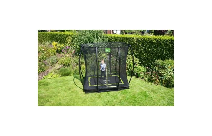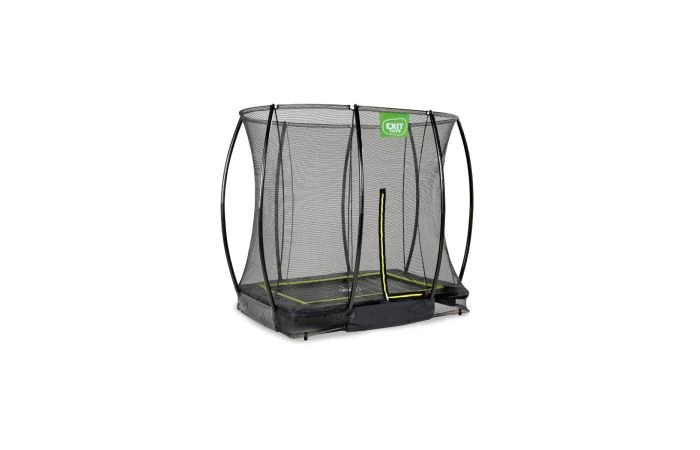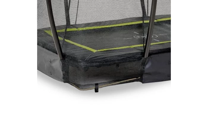De EXIT Silhouette inground trampoline is een compacte rechthoekige trampoline met een matzwarte beschermrand. In een handomdraai graaf je een kuil in de grond waar de trampoline in wordt gezet voor een mooi en veilig resultaat. Zo hoef je je als ouders geen zorgen te maken dat de kinderen bij een missprong van een hoge trampoline af kunnen vallen.