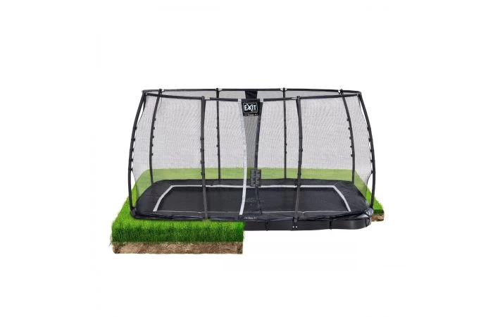 De EXIT Supreme groundlevel trampoline is een rechthoekige trampoline van absolute topkwaliteit met een zwarte beschermrand. Voor de EXIT Supreme graaf je een diepe kuil in de grond, zodat de trampoline gelijk ligt met het maaiveld. Dat is niet alleen mooi om te zien, maar ook veilig in het gebruik.