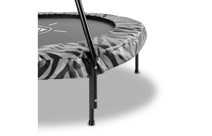 De EXIT Tiggy junior trampoline is een mini trampoline voor kinderen van drie tot vijf jaar. Deze compacte ronde trampoline is voorzien van een beugel voor extra houvast tijdens het springen en heeft een lage opstap, zodat peuters en kleuters de trampoline eenvoudig kunnen betreden. Uniek aan de trampoline is de zwartgrijze beschermrand met stoere tijgerprint. Op de Tiggy junior trampoline van EXIT Toys beleven de allerkleinsten groots springplezier.