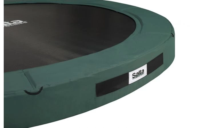 De Salta Ground Premium Trampoline is voorzien van een veiligheidsrand met een geïntegreerd ventilatiesysteem waardoor de luchtstroom wordt bevorderd. Door de ankers in de grond blijft de veiligheidsrand op zijn plaats zitten tijdens het springen. De veiligheidsrand zorgt voor afdekking van de veren en het frame.