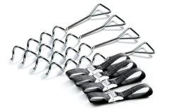 Door de spiraalvorm zijn de ankers gemakkelijk in de bodem te draaien en geschikt voor zowel een zachte alsmede een harde grondsoort. De set bestaat uit 4 gegalvaniseerde grondankers (L43cm Ø8mm), met 4 weersbestendige polyester spanbanden aan een robuuste gietijzeren gesp.